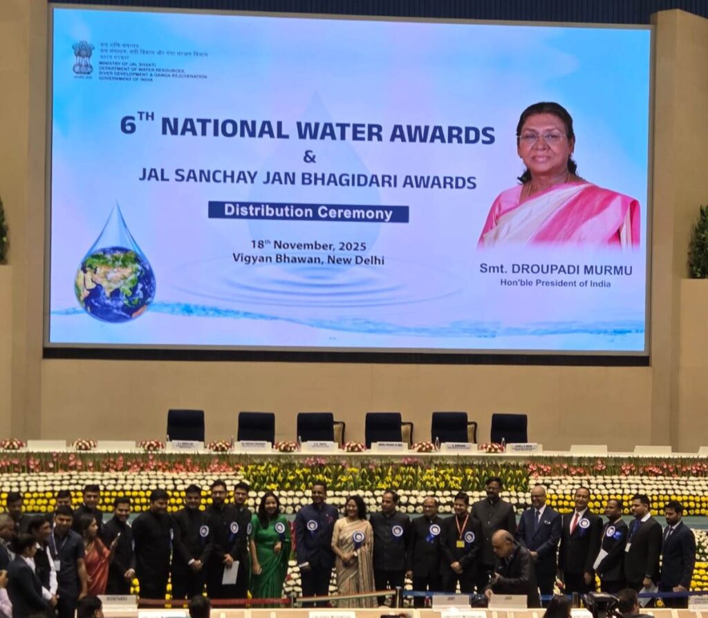 बलरामपुर।नई दिल्ली स्थित विज्ञान भवन में आयोजित छठवें राष्ट्रीय जल पुरस्कार एवं जल संचय जन भागीदारी पुरस्कार वितरण समारोह में राष्ट्रपति द्रोपदी मुर्मू व मंत्री जल शक्ति मंत्रालय भारत सरकार सी. आर. पाटिल के करकमलों से जल शक्ति जन भागीदारी अभियान 1.0 के अंतर्गत बलरामपुर-रामानुजगंज जिले को उसके उत्कृष्ट प्रदर्शन के लिए 25 लाख रूपये की पुरस्कार राशि प्रदान की गई। उक्त पुरस्कार कलेक्टर राजेन्द्र कटारा के द्वारा ग्रहण किया गया। जल शक्ति जन भागीदारी अभियान 1.0 जल संचय संरचना निर्माण तथा उनका डाटा बेस तैयार करने हेतु एक सफल अभियान है, जिसके अंतर्गत बलरामपुर-रामानुजगंज जिले ने पूर्वी क्षेत्र की श्रेणी-3 में 6वां रैंक हासिल किया है। उल्लेखनीय है कि जिले में जल संरचनाओं का निर्माण के लिए यह उपलब्धि मिली है। कलेक्टर राजेन्द्र कटारा के नेतृत्व एवं जिला पंचायत सीईओ नयनतारा सिंह तोमर के मार्गदर्शन में सफलता प्राप्त की गई है।