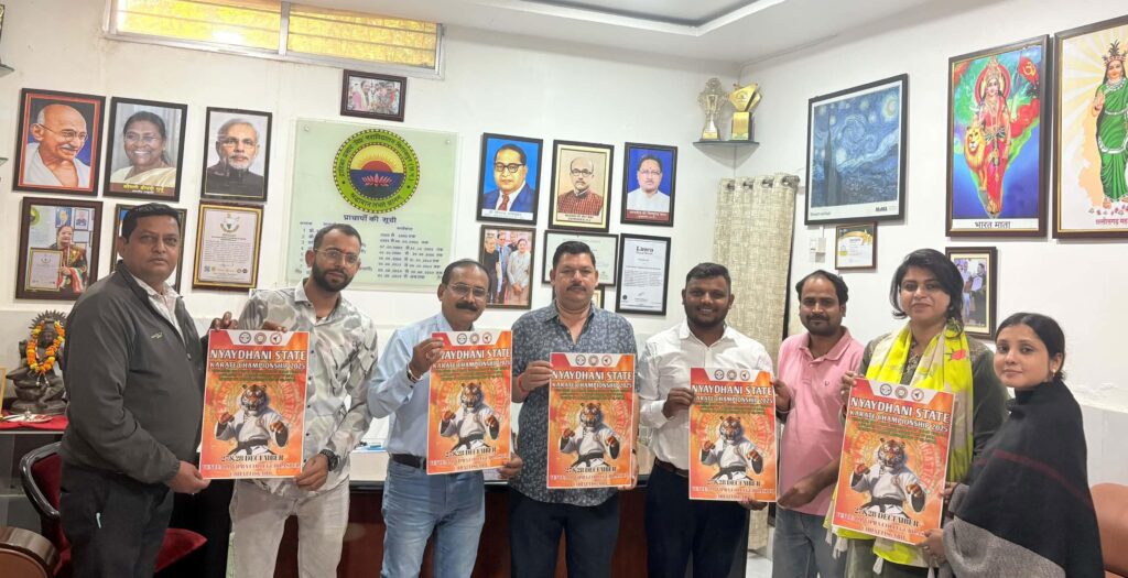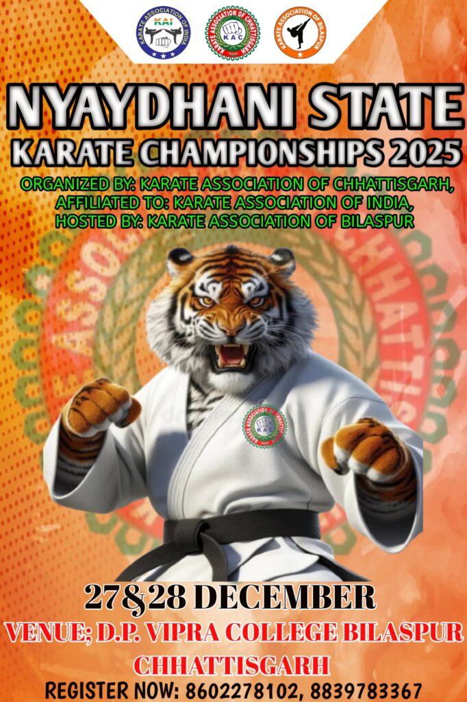 बिलासपुर।न्यायधानी स्टेट कराते चैंपियनशिप 2025 जो कि 27 व 28 दिसंबर को डी.पी. विप्र महाविद्यालय बिलासपुर में आयोजित होना है । प्रतियोगिता के पोस्टर का अनावरण डी.पी. विप्रा महाविद्यालय के प्राचार्या अंजू शुक्ला के मार्गदर्शन पर एम एस तांबोली सर डॉ अजय यादव सर डॉ निधीश चौबे सर डॉ राम सर डॉ आशीष शर्मा, सृष्टि कांसकर, विकास सिंह,अरुण नथनी, राज वर्मा, संजुक्ता दास के कर कमलों द्वारा किया गया। कराते एसोसिएशन ऑफ छत्तीसगढ़ के अध्यक्ष सुशील चंद्रा व महासचिव अविनाश सेठी ने बताया कि इस प्रतियोगिता में पूरे प्रदेश भर के अनेक जिलो से खिलाड़ी हिस्सा लेने न्यायधानी बिलासपुर के पधार रहे है। जिसकी तैयारी में पूरे जिले के अधिकारी पदाधिकारी सदस्य पूरे तन मन से अपना सहयोग प्रदान कर रहे है। इस प्रतियोगिता की जानकारी कराते एसोसिएशन ऑफ़ बिलासपुर के महासचिव प्रतीक सोनी ने दी।