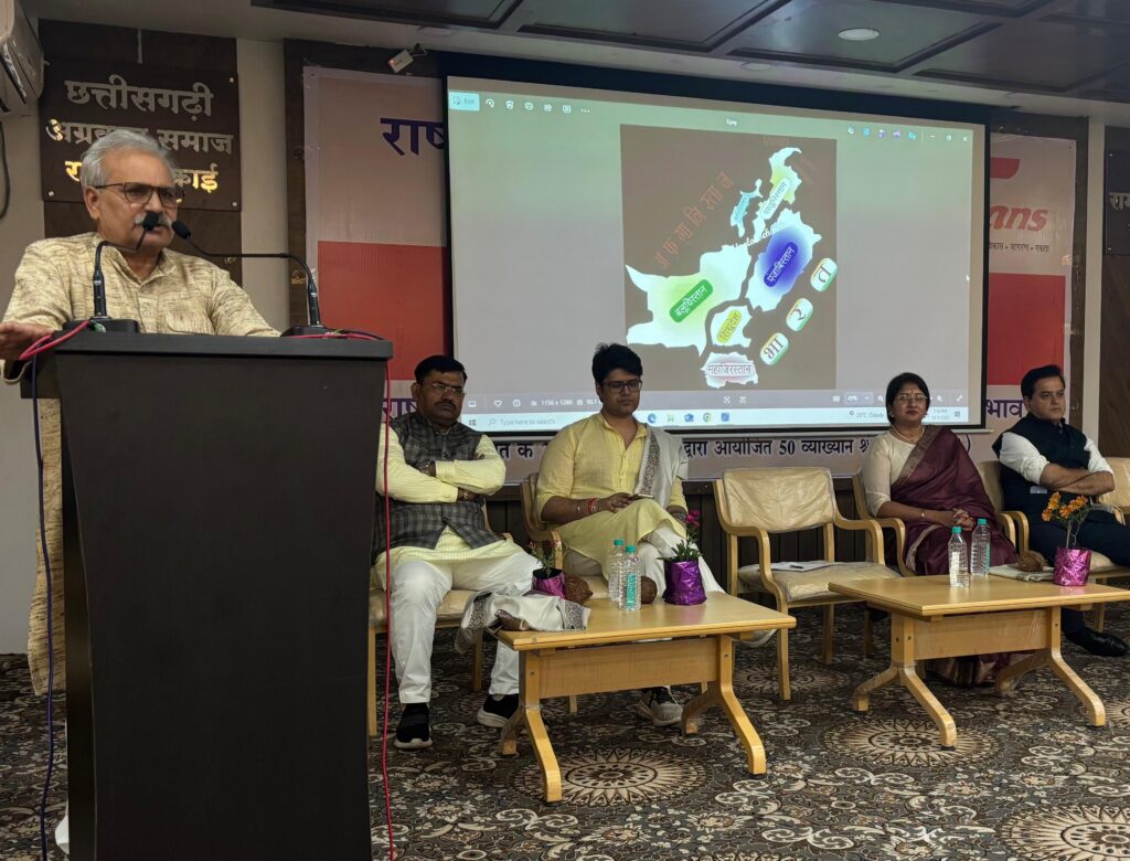 रायपुर। राष्ट्रीय सुरक्षा जागरण मंच Fans रायपुर चैप्टर द्वारा राष्ट्रीय सुरक्षा सिद्धांत और भारत की आंतरिक सुरक्षा पर पाकिस्तान के प्रभाव विषयक संगोष्ठी का आयोजन किया गया। कार्यक्रम में वक्ताओं ने पाकिस्तान की नीतियों, उसके सैन्य व राजनीतिक स्वरूप तथा आतंकवाद के प्रति उसके रुख पर कड़ी टिप्पणी की।