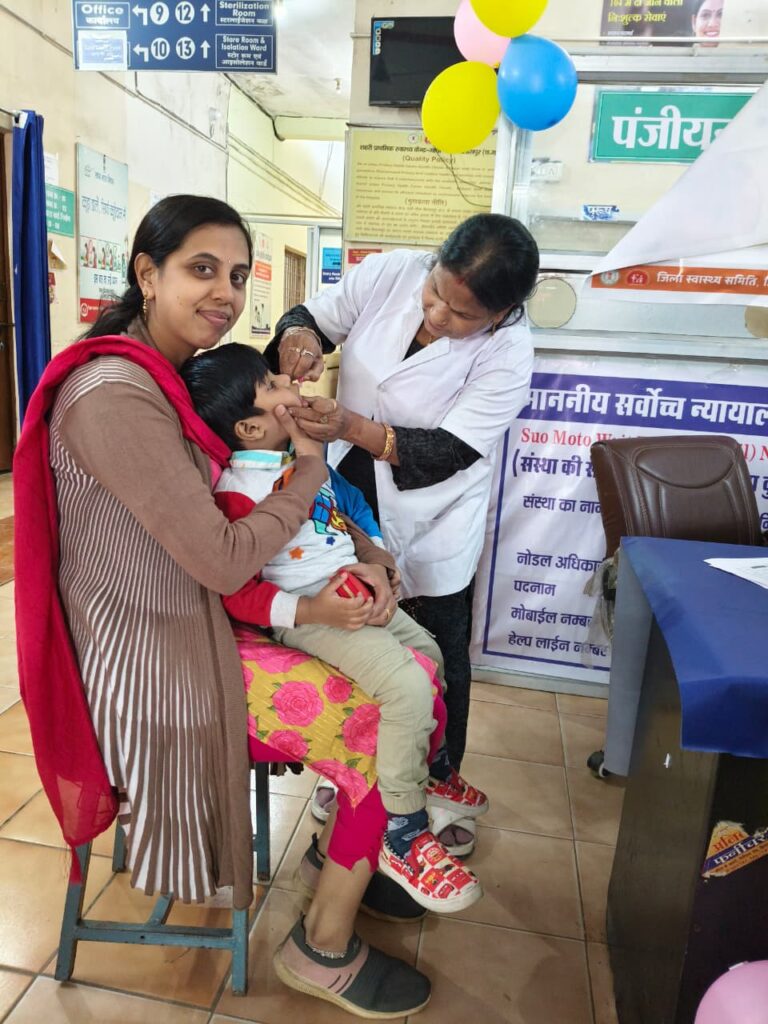 स्वयंसेविका श्वेता कौशिक ने आंगनबाड़ी केंद्र तिफरा, केंद्र क्रमांक 10 में आंगनबाड़ी कार्यकर्ता दुर्गा कौशिक के साथ बच्चों को पल्स पोलियो की खुराक पिलाने में सहयोग किया।