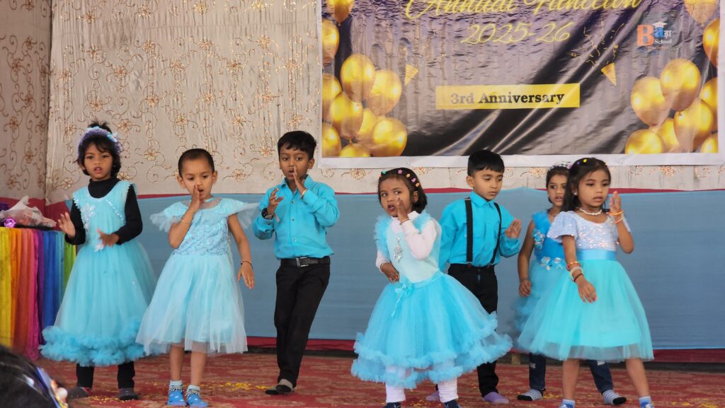 कार्यक्रम में नर्सरी कक्षा के नन्हे विद्यार्थियों ने नृत्य, संगीत और सामूहिक प्रस्तुतियों के माध्यम से आत्मविश्वास, अनुशासन और टीमवर्क का प्रभावशाली प्रदर्शन किया। मंच पर बच्चों की सहज अभिव्यक्ति और उत्साह ने यह सिद्ध किया कि प्रारंभिक शिक्षा में ऐसे आयोजनों की भूमिका अत्यंत महत्वपूर्ण है।