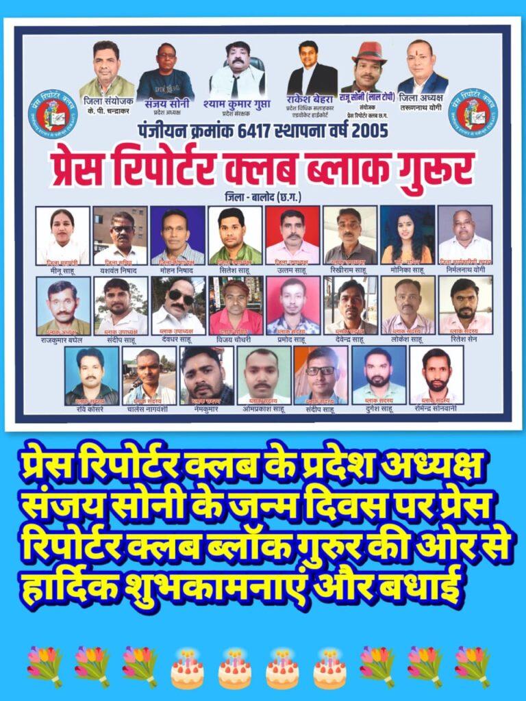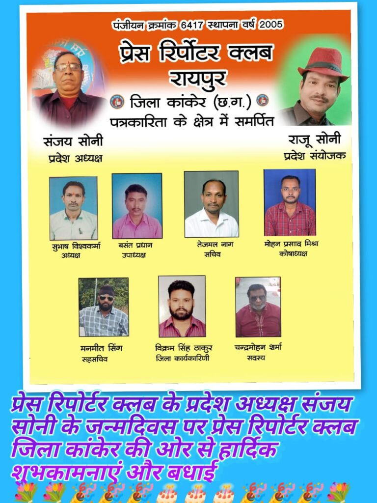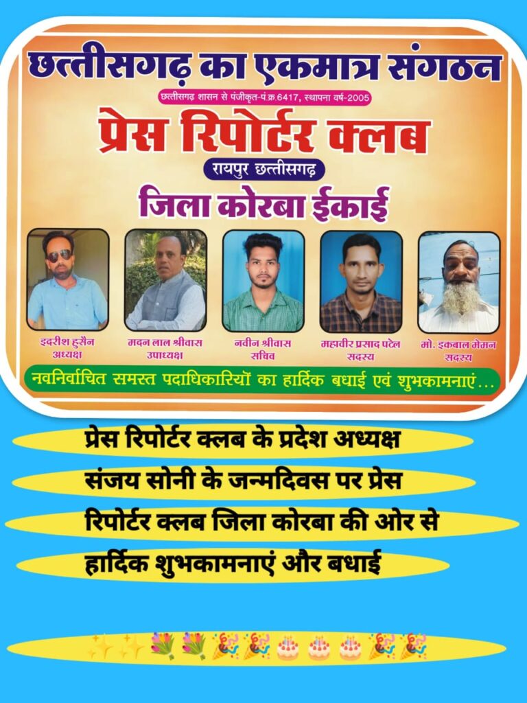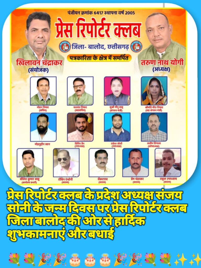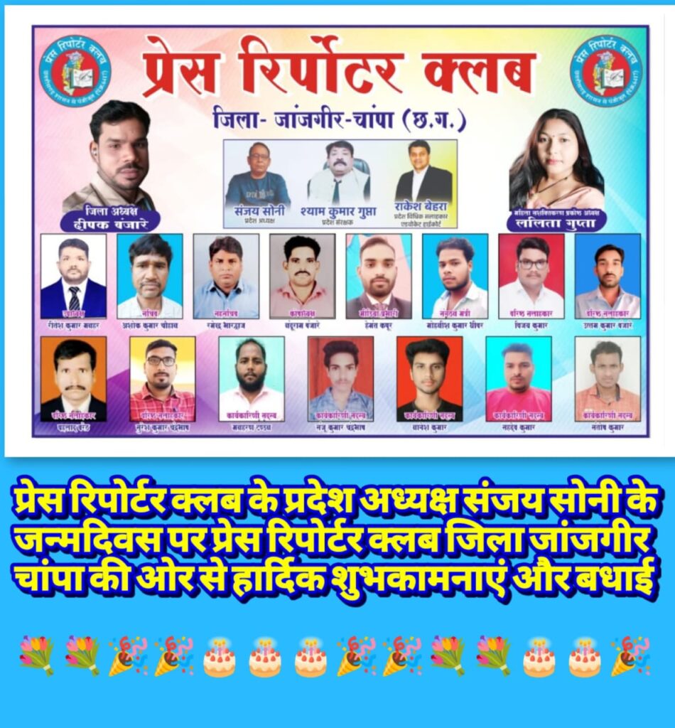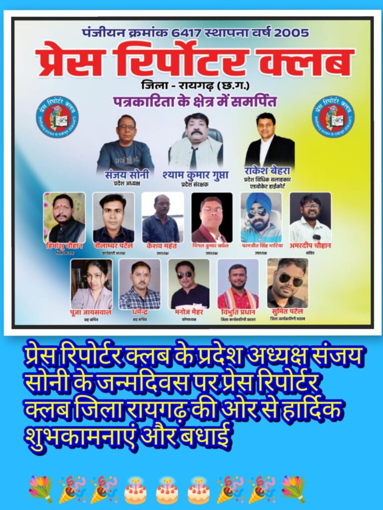 प्रेस रिपोर्टर क्लब, छत्तीसगढ़ के प्रदेश अध्यक्ष संजय सोनी के जन्मदिवस के अवसर पर प्रदेशभर में उत्साह, सम्मान और आत्मीयता का अभूतपूर्व दृश्य देखने को मिला। प्रदेश के सभी जिलों से पत्रकारों, संगठन पदाधिकारियों, सामाजिक कार्यकर्ताओं एवं जनहित से जुड़े विभिन्न वर्गों ने उन्हें निरंतर बधाई एवं शुभकामनाएं प्रेषित कीं। यह अवसर केवल एक जन्मदिवस तक सीमित नहीं रहा, बल्कि यह संघर्षशील नेतृत्व, संगठनात्मक सुदृढ़ता और पत्रकार हितों के प्रति प्रतिबद्धता का प्रतीक बन गया।