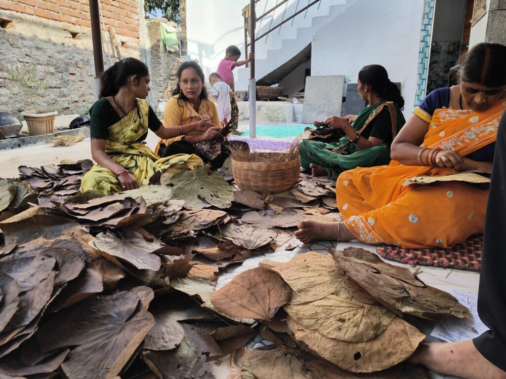 स्वदेशी अपनाओ अभियान से महिलाओं को मिल रहा रोजगार, बघमरा में पत्तल निर्माण का प्रशिक्षण जारी