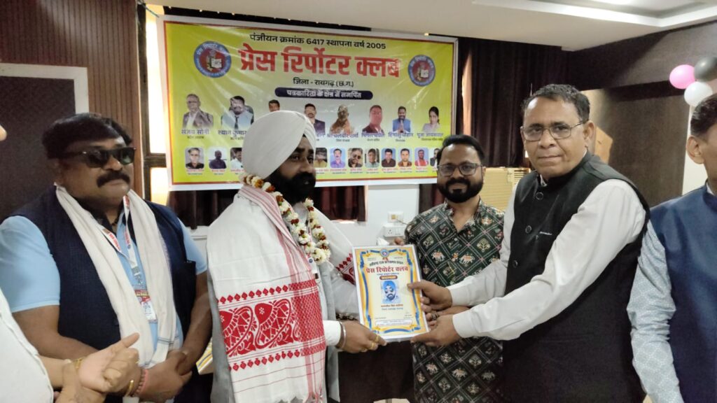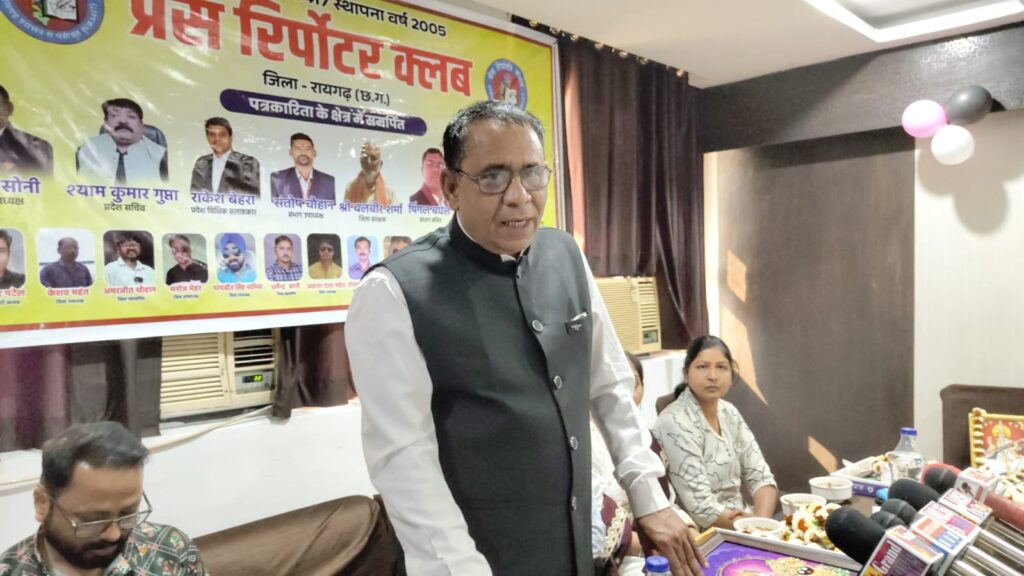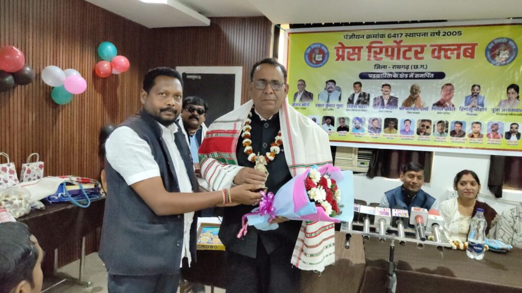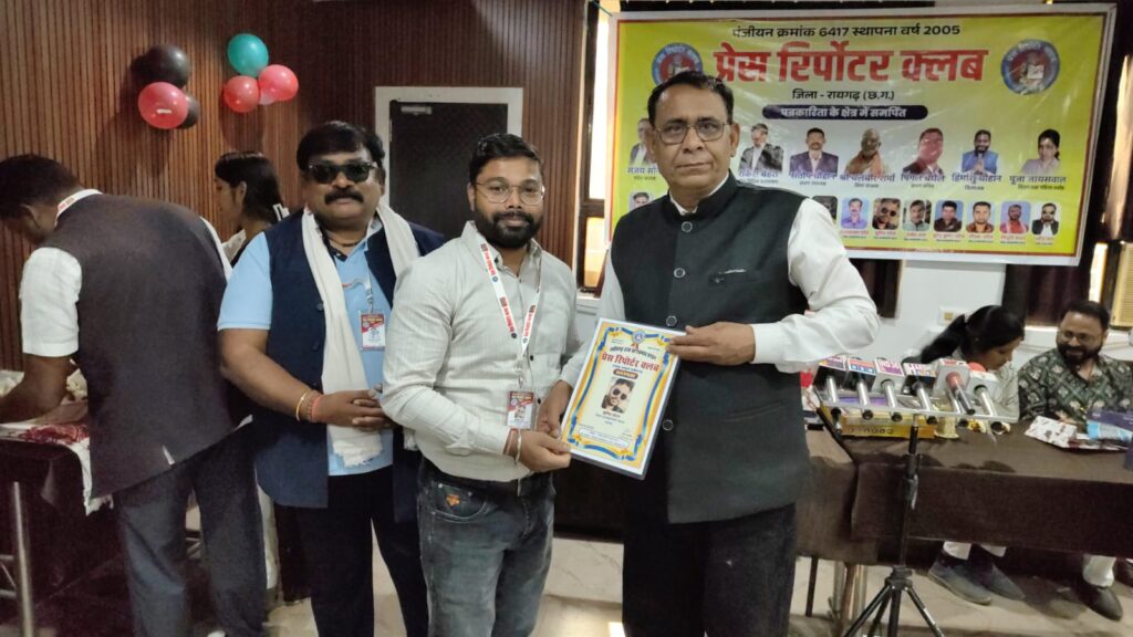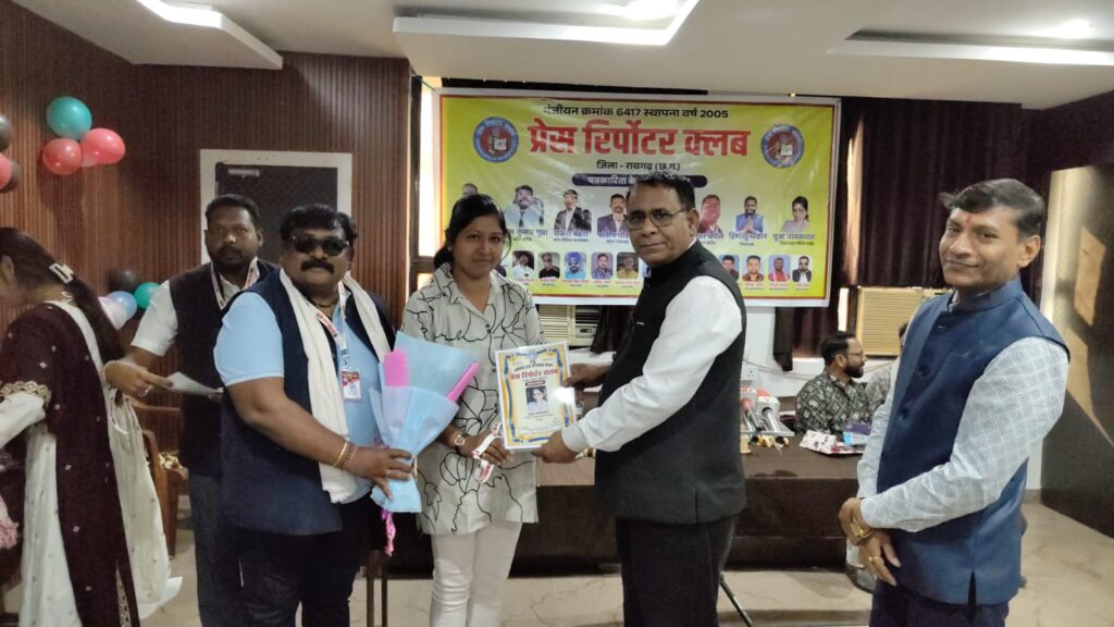 रायगढ़।रायगढ़ जिले में प्रेस रिपोर्टर क्लब द्वारा आयोजित शपथ ग्रहण एवं पत्रकार सम्मान समारोह अत्यंत भव्य, गरिमामय एवं प्रेरणादायी वातावरण में संपन्न हुआ। इस ऐतिहासिक एवं महत्वपूर्ण आयोजन में प्रेस रिपोर्टर क्लब के प्रदेशाध्यक्ष संजय सोनी मुख्य अतिथि के रूप में उपस्थित रहे, जिनकी गरिमामयी उपस्थिति ने कार्यक्रम को विशेष ऊंचाई प्रदान की। कार्यक्रम की अध्यक्षता प्रदेश सचिव श्याम गुप्ता द्वारा की गई।