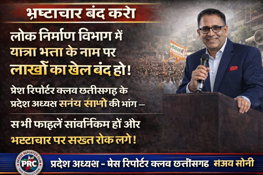 इस पूरे मामले को लेकर प्रेस रिपोर्टर क्लब छत्तीसगढ़ के प्रदेश अध्यक्ष संजय सोनी ने कड़ा रुख अपनाते हुए छत्तीसगढ़ शासन से तत्काल जांच की मांग की है। उन्होंने कहा कि यात्रा भत्ता के नाम पर जिस प्रकार से फाइलों में भारी-भरकम बिल लगाकर राशि निकाली जा रही है, वह गंभीर जांच का विषय है।