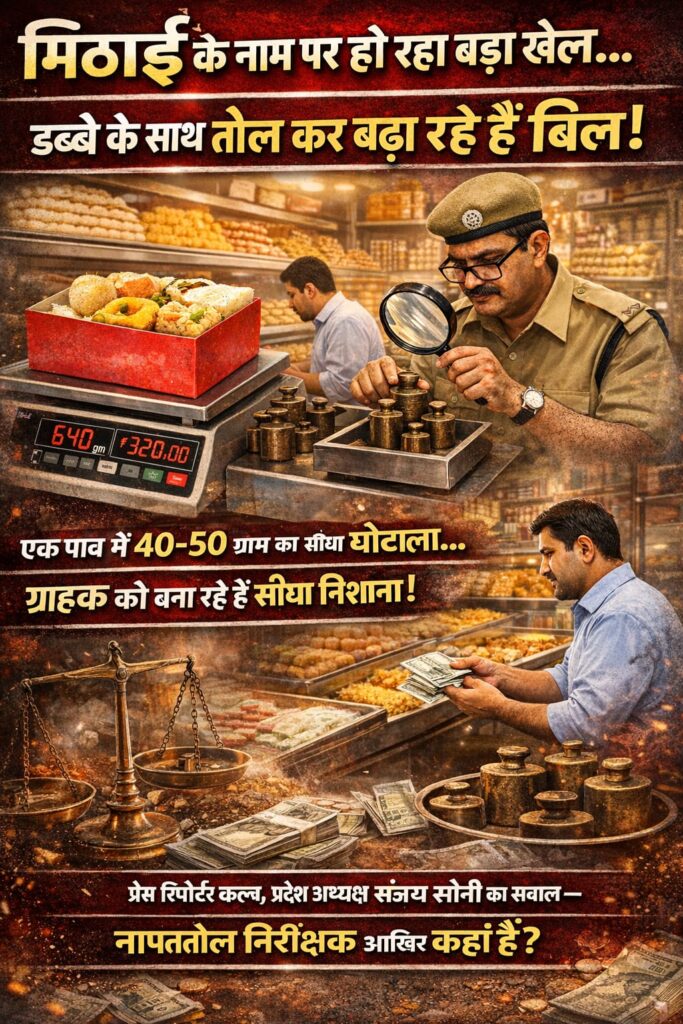 рд╢рд╣рд░ рдореЗрдВ рдорд┐рд╖реНрдард╛рди рднрдВрдбрд╛рд░реЛрдВ рджреНрд╡рд╛рд░рд╛ рдЧреНрд░рд╛рд╣рдХреЛрдВ рдХреЗ рд╕рд╛рде рд╣реЛ рд░рд╣реА рдардЧреА рдЕрдм рдЦреБрд▓рдХрд░ рд╕рд╛рдордиреЗ рдЖрдиреЗ рд▓рдЧреА рд╣реИред рдорд┐рдард╛рдИ рдЦрд░реАрджрдиреЗ рдкрд╣реБрдВрдЪ рд░рд╣реЗ рдЖрдо рд▓реЛрдЧреЛрдВ рдХреЛ рдмрд┐рдирд╛ рдЬрд╛рдирдХрд╛рд░реА рдХреЗ рд╣реА рднрд╛рд░реА рдиреБрдХрд╕рд╛рди рдЙрдард╛рдирд╛ рдкрдбрд╝ рд░рд╣рд╛ рд╣реИред рджреБрдХрд╛рдирджрд╛рд░ рдбрд┐рдмреНрдмреЗ рдХреЗ рд╕рд╛рде рддреМрд▓ рдХрд░ рдорд┐рдард╛рдИ рдХрд╛ рдмрд┐рд▓ рдмрдврд╝рд╛ рд░рд╣реЗ рд╣реИрдВ, рдЬрд┐рд╕рд╕реЗ рдЧреНрд░рд╛рд╣рдХ рд╕реАрдзреЗ-рд╕реАрдзреЗ рдардЧреА рдХрд╛ рд╢рд┐рдХрд╛рд░ рдмрди рд░рд╣рд╛ рд╣реИред
